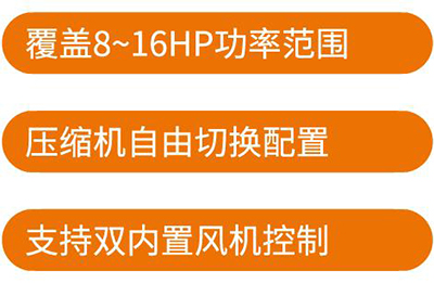 Universalization:Covering a power range of 7-18HP, different compressors can be easily configured by dialing codes.